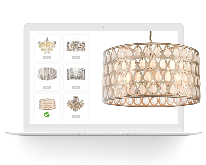 Любую выбранную модель можно сразу, еще до её покупки, “примерить” в спальню, гостиную или холл. Для этого достаточно сделать фото помещения, загрузить его на сайт и “надеть” на свой интерьер приглянувшуюся люстру. Всё гениальное просто - пара минут и станет очевидно - тот ли это светильник, который нужен!