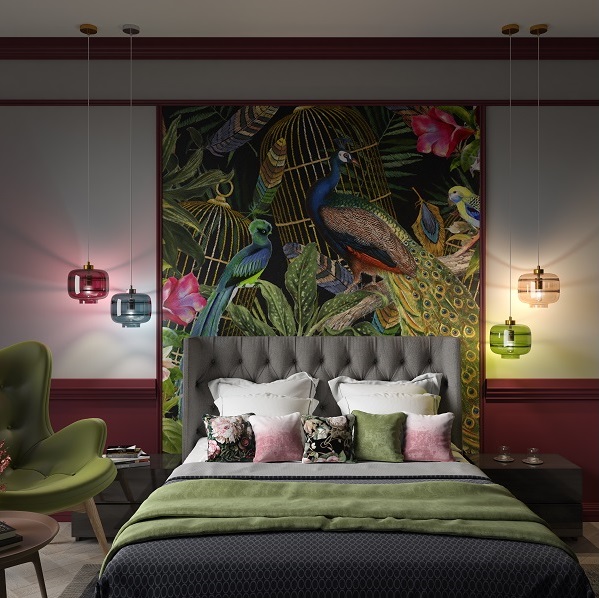Летом как никогда хочется спрятать вещи и предметы темных цветов в шкаф и, подобно природе, вдохнуть жизнь в пространство освежающей сочностью всех оттенков зелени. Научно установлено, что даже смотреть на цвет листвы и травы полезно: он оказывает на психику успокаивающее седативное воздействие. Внедрять зеленый цвет в пространство можно точечно – например, в виде красивой стеклянной вазы или светильника изумрудного оттенка.
