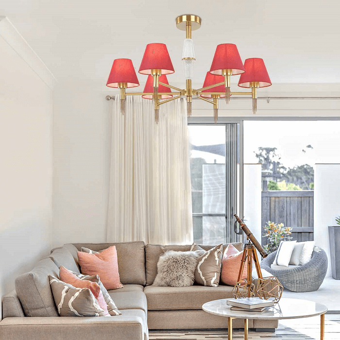 Если вы готовы к более масштабному цветовому перевоплощению, в дополнение к настольной лампе можно повесить люстру, торшер и бра с красными плафонами. В отличие от нейтральных оттенков, красный цвет транслирует бодрость, активность и жизнерадостность. Согласно психологии цвета, красный дарит нам жизненную силу, способствует хорошему настроению и заставляет достигать поставленных целей. Даже одной небольшой детали красного цвета в комнате будет достаточно, чтобы положительно влиять на ваше мироощущение. А что это будет – красивая настольная лампа, необычная алая люстра или стильная малиновая ваза – решать вам.