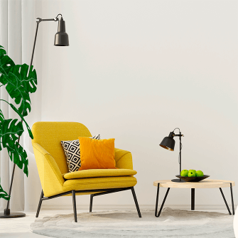 - Выберите лампу в цвет со шторами или декоративными подушками на диване, установите ее на журнальном столике или полке в гостиной. Она «заиграет» вместе с другими предметами и выделится. Кроме того, поможет создать область неяркого спокойного освещения. При этом свете будет комфортно общаться с близкими или просто смотреть телевизор.