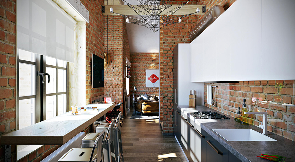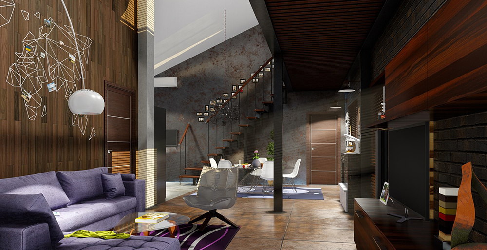 Пример интерьера в стиле Лофт номер 2Как правило, интерьеры в этом стиле выглядят тяжелыми. Грубые поверхности и основательные материалы наделяют их жестким, мужским «характером».