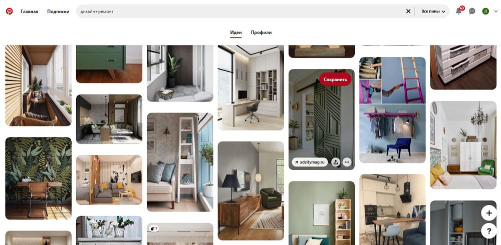 «Пинтерест» – настоящий рай для фанатов визуала. После запрета всем известной популярной социальной сети, концепция которой строилась на красивых картинках, Pinterest стал самой естественной и логичной ее альтернативой. Здесь можно смотреть стильные западные интерьеры, подсматривать в них интересные идеи и практичные решения для своих клиентов, создавать собственные подборки и выкладывать фотографии своих проектов, привлекая новую аудиторию, а вместе с ней и новых заказчиков.