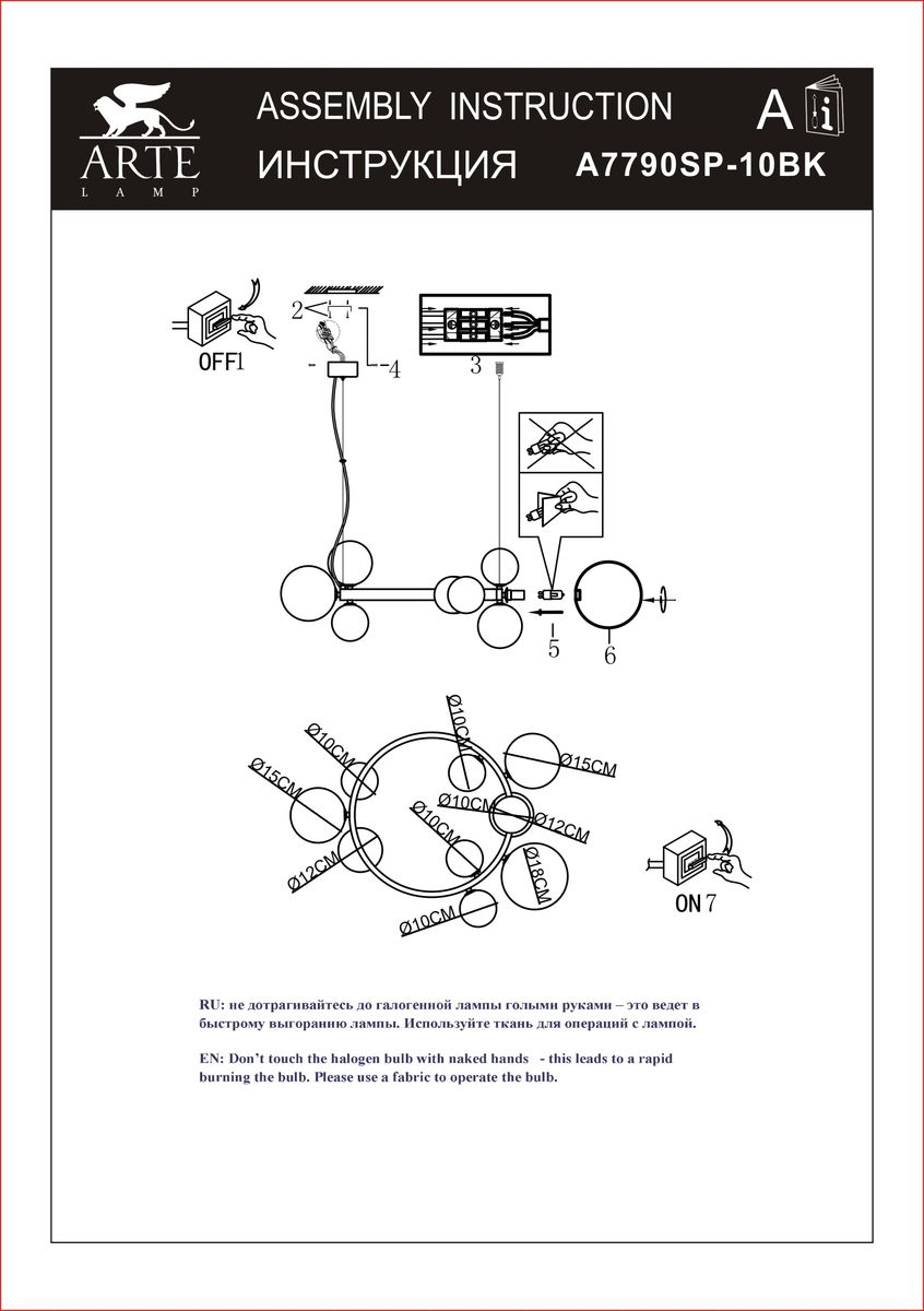 Элегантная модель A7790SP-10BK от итальянской компании Arte Lamp относится к коллекции Vincent и отлично подойдет для установки на потолок в гостиной, оформленной в современном стиле. Подвесная люстра Arte Lamp Vincent A7790SP-10BK с плафонами в виде шаров осветит помещение площадью 15 кв. м. Производитель Arte Lamp рекомендует использовать для устройства галогеновые лампы с цоколем G9 и мощностью 40 W. Прибор произведен с использованием материалов: стекло и металл и может использоваться для натяжного потолка. Основным цветом товара является черный. Торопитесь сделать заказ в интернет-магазине ВамСвет.
