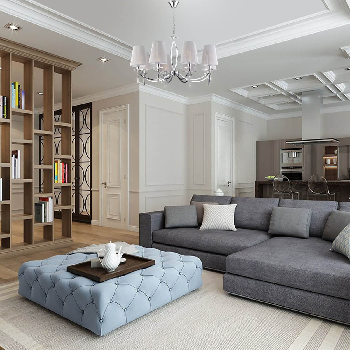 Неподражаемая модель 60079/8 хром от российской компании Eurosvet относится к коллекции Valery и отлично подойдет для установки на потолок в гостиной, оформленной в стиле неоклассики. Подвесная люстра Eurosvet 60079/8 хром с плафонами-конусами осветит помещение площадью 17 кв. м. Производитель Eurosvet рекомендует использовать для устройства лампы накаливания с цоколем E14 и мощностью 40 W. Прибор произведен с использованием материалов: текстиль, металл и ткань и может использоваться для натяжного потолка. Основным цветом товара является серый и серебристо-стальной. Подвесная люстра 60079/8 хром продается по цене 27300 руб. Торопитесь сделать заказ в интернет-магазине ВамСвет.