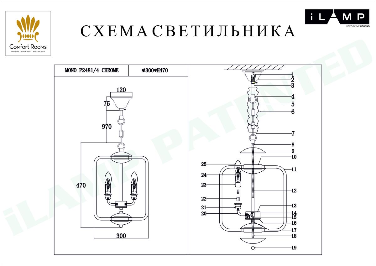 Подвесная люстра iLamp Mono P2481-4 CR