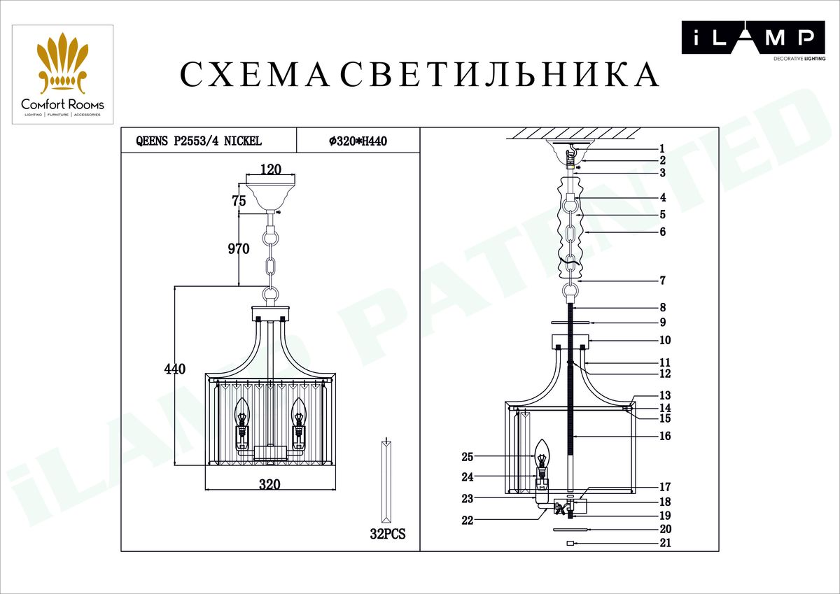 Подвесная люстра iLamp Qeens P2553-4 NIC