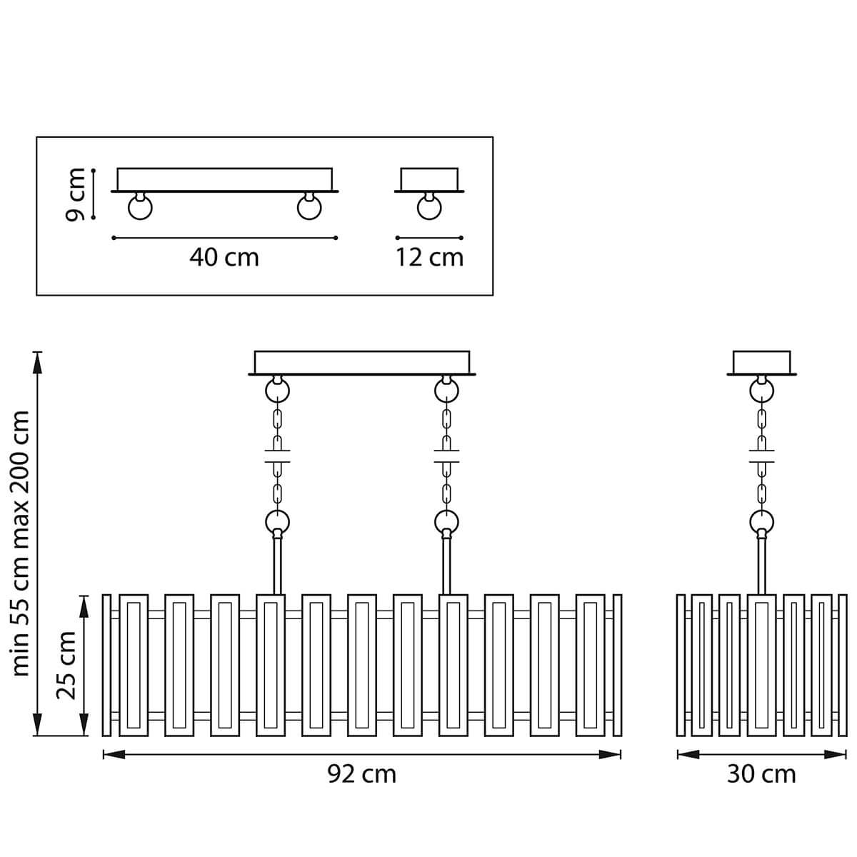 - Технические характеристикиОсновныеРазмерыШирина, мм300Высота, мм250Длина, мм920Высота встраиваемой части, мм90Диаметр врезного отверстия, мм120Длина подвеса, мм1450Вес, кг10.5ЛампыТип цоколяПосмотреть другие товары
