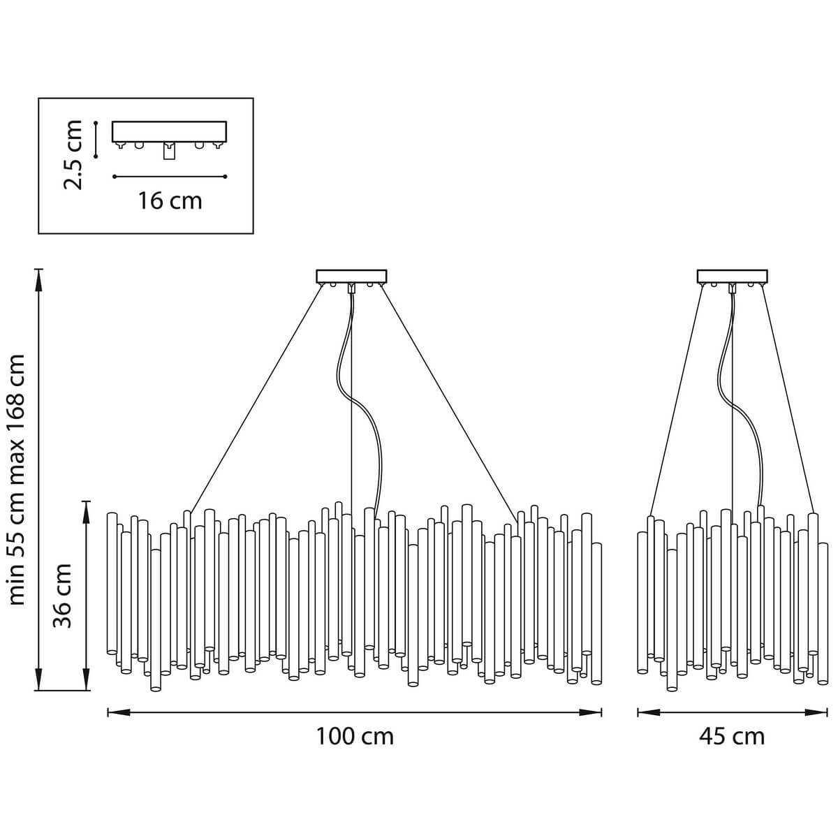 - Технические характеристикиОсновныеРазмерыШирина, мм450Высота, мм360Длина, мм1000Высота встраиваемой части, мм25Диаметр врезного отверстия, мм160Длина подвеса, мм1320ЛампыТип цоколяПосмотреть другие товары