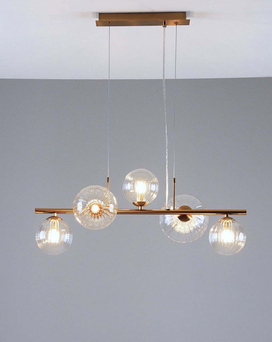 Утонченная модель V10800-5P от итальянской компании Moderli относится к коллекции Molly и отлично подойдет для установки на потолок кухни, оформленной в стиле модерн. Подвесная люстра Moderli Molly V10800-5P с плафонами в виде шаров осветит помещение площадью 12 кв. м. Производитель Moderli рекомендует использовать для устройства светодиодные лампы с цоколем G9 и мощностью 5 W. Прибор произведен с использованием материалов: стекло и металл и может использоваться для натяжного потолка. Основным цветом товара является янтарный. Подвесная люстра V10800-5P продается по цене 15490 руб, с дисконтом 18% - ваша выгода при покупке составит 3500 руб. Торопитесь сделать заказ в интернет-магазине ВамСвет.