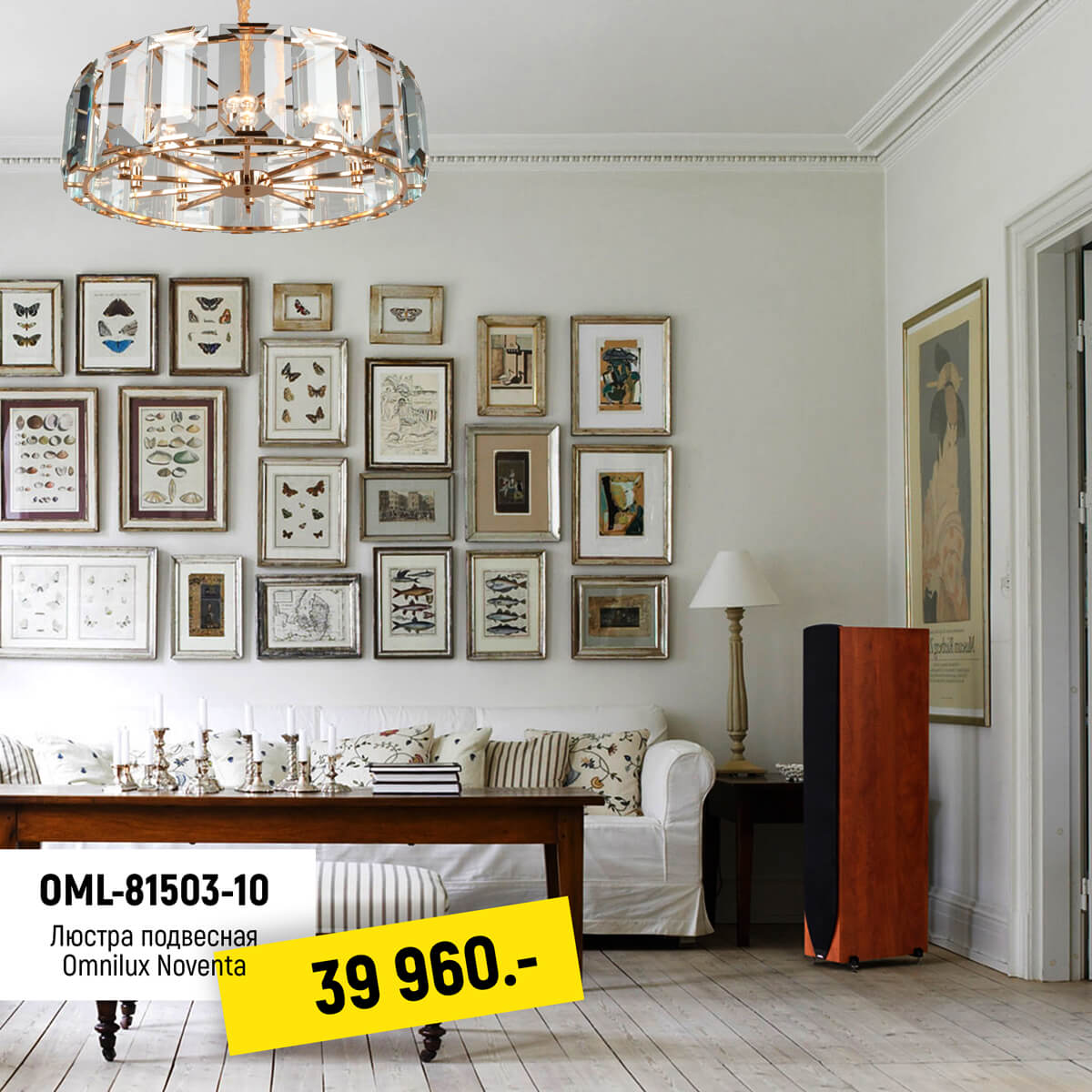 Интересная модель OML-81503-10 от китайской компании Omnilux относится к коллекции Noventa и отлично подойдет для установки на потолок в гостиной, оформленной в классическом стиле. Подвесная люстра Omnilux Noventa OML-81503-10 с цилиндрическими плафонами осветит помещение площадью 20 кв. м. Производитель Omnilux рекомендует использовать для устройства лампы накаливания с цоколем E14 и мощностью 40 W. Прибор произведен с использованием материалов: хрусталь и металл и может использоваться для натяжного потолка. Подвесная люстра OML-81503-10 продается по цене 68020 руб. Торопитесь сделать заказ в интернет-магазине ВамСвет.