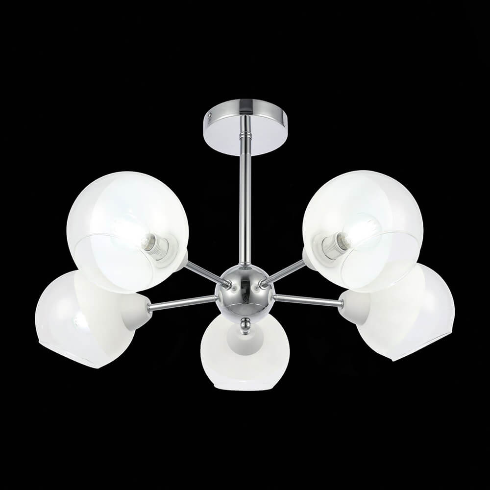 Интересная модель SLE102702-05 от итальянской компании Evoluce относится к коллекции Giorte и отлично подойдет для установки на потолок в гостиной, оформленной в скандинавском стиле. Потолочная люстра Evoluce Giorte SLE102702-05 с плафонами в виде шаров осветит помещение площадью 11 кв. м. Производитель Evoluce рекомендует использовать для устройства лампы накаливания с цоколем E14 и мощностью 40 W. Прибор произведен с использованием материалов: стекло и металл. Основным цветом товара является хромовый и серебристо-стальной. Потолочная люстра SLE102702-05 продается по цене 8910 руб. Торопитесь сделать заказ в интернет-магазине ВамСвет.