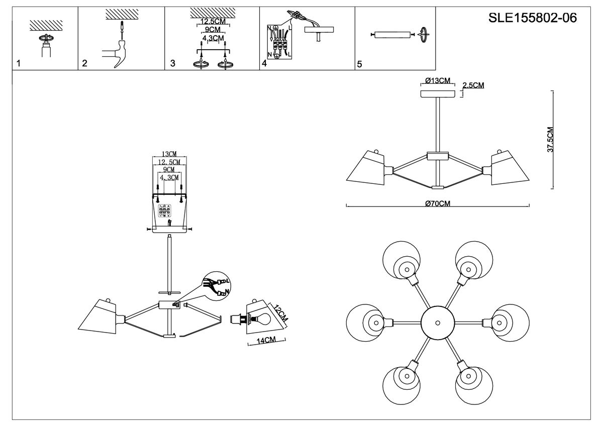 Необыкновенная модель SLE155802-06 от итальянской компании Evoluce относится к коллекции Vario и отлично подойдет для установки на потолок в гостиной, оформленной в стиле хай-тек. Потолочная люстра Evoluce Vario SLE155802-06 с плафонами-конусами осветит помещение площадью 13 кв. м. Производитель Evoluce рекомендует использовать для устройства лампы накаливания с цоколем E14 и мощностью 40 W. Прибор произведен с использованием материала: металл и может использоваться для натяжного потолка. Основным цветом товара является белый и серебристо-стальной. Торопитесь сделать заказ в интернет-магазине ВамСвет.
