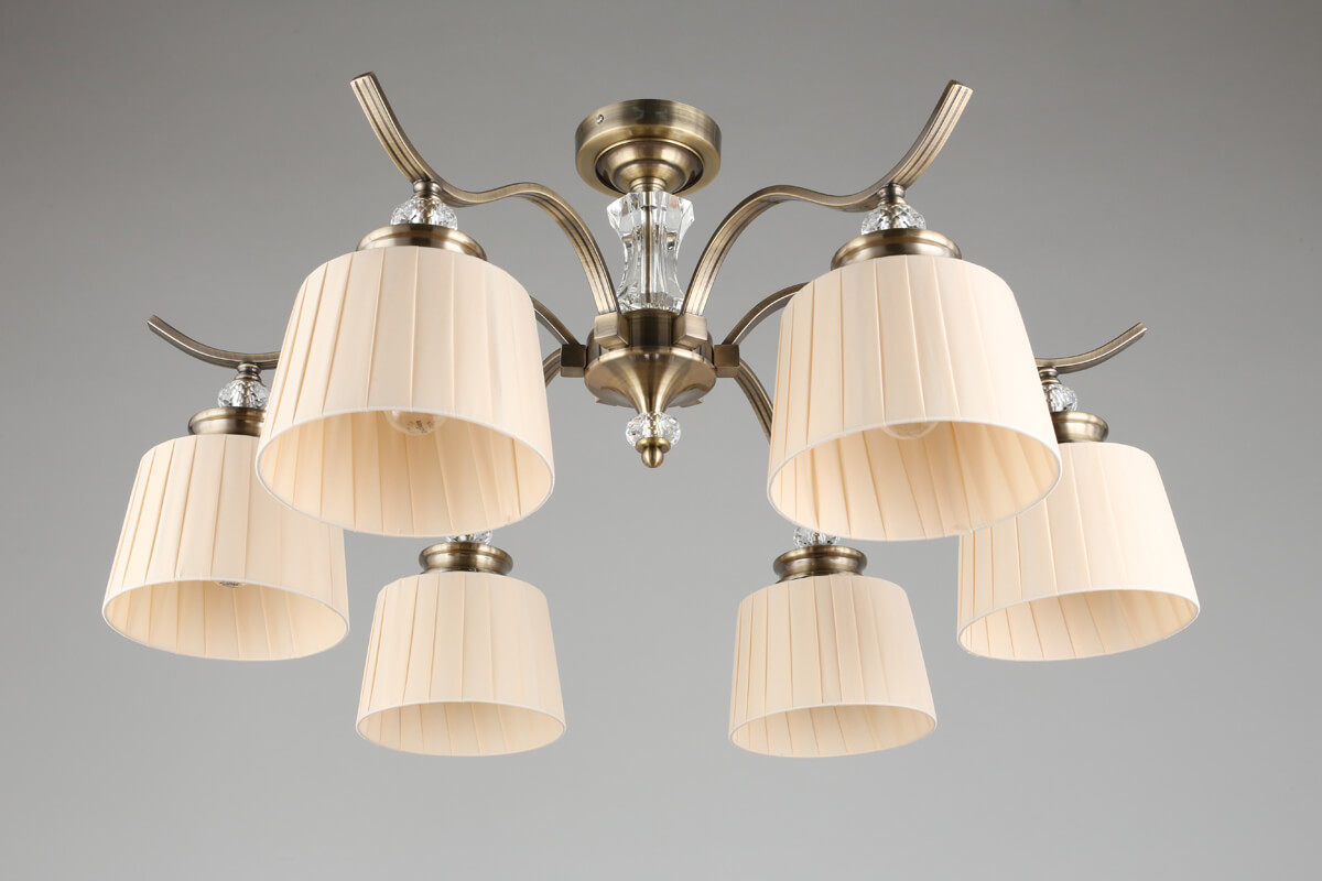 Замечательная модель OML-88417-06 от китайской компании Omnilux относится к коллекции Arosio и отлично подойдет для установки на потолок спальни, оформленной в классическом стиле. Потолочная люстра Omnilux Arosio OML-88417-06 с плафонами-конусами осветит помещение площадью 14 кв. м. Производитель Omnilux рекомендует использовать для устройства лампы накаливания с цоколем E14 и мощностью 40 W. Прибор произведен с использованием материалов: текстиль, металл и ткань и может использоваться для натяжного потолка. Основным цветом товара является бежевый и бронзовый. Торопитесь сделать заказ в интернет-магазине ВамСвет.