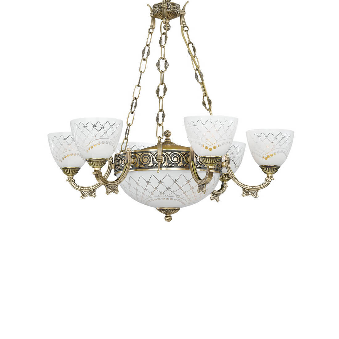 Замечательная модель L 7052/6+2 от итальянской компании Reccagni Angelo относится к коллекции Bronze 7052 и отлично подойдет для установки на потолок в гостиной, оформленной в классическом стиле. Подвесная люстра Reccagni Angelo L 7052/6+2 с овальными плафонами осветит помещение площадью 24 кв. м. Производитель Reccagni Angelo рекомендует использовать для устройства лампы накаливания с цоколем E27 и мощностью 60 W. Прибор произведен с использованием материалов: стекло и латунь и может использоваться для натяжного потолка. Основным цветом товара является белый и античная бронза. Подвесная люстра L 7052/6+2 продается по цене 192360 руб. Торопитесь сделать заказ в интернет-магазине ВамСвет.